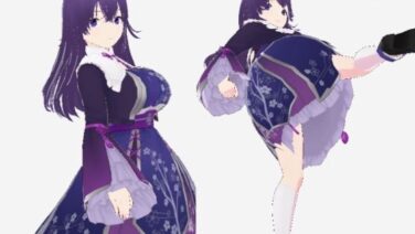 和柄の洋風ドレスの巨乳美女(セリフなし 3DCGモデル イラスト集)