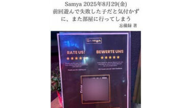 おっぱい FKKレポート vol.35 Samya 2025年8月29(金) 前回遊んで失敗した子だと気付かずに、また部屋に行ってしまう